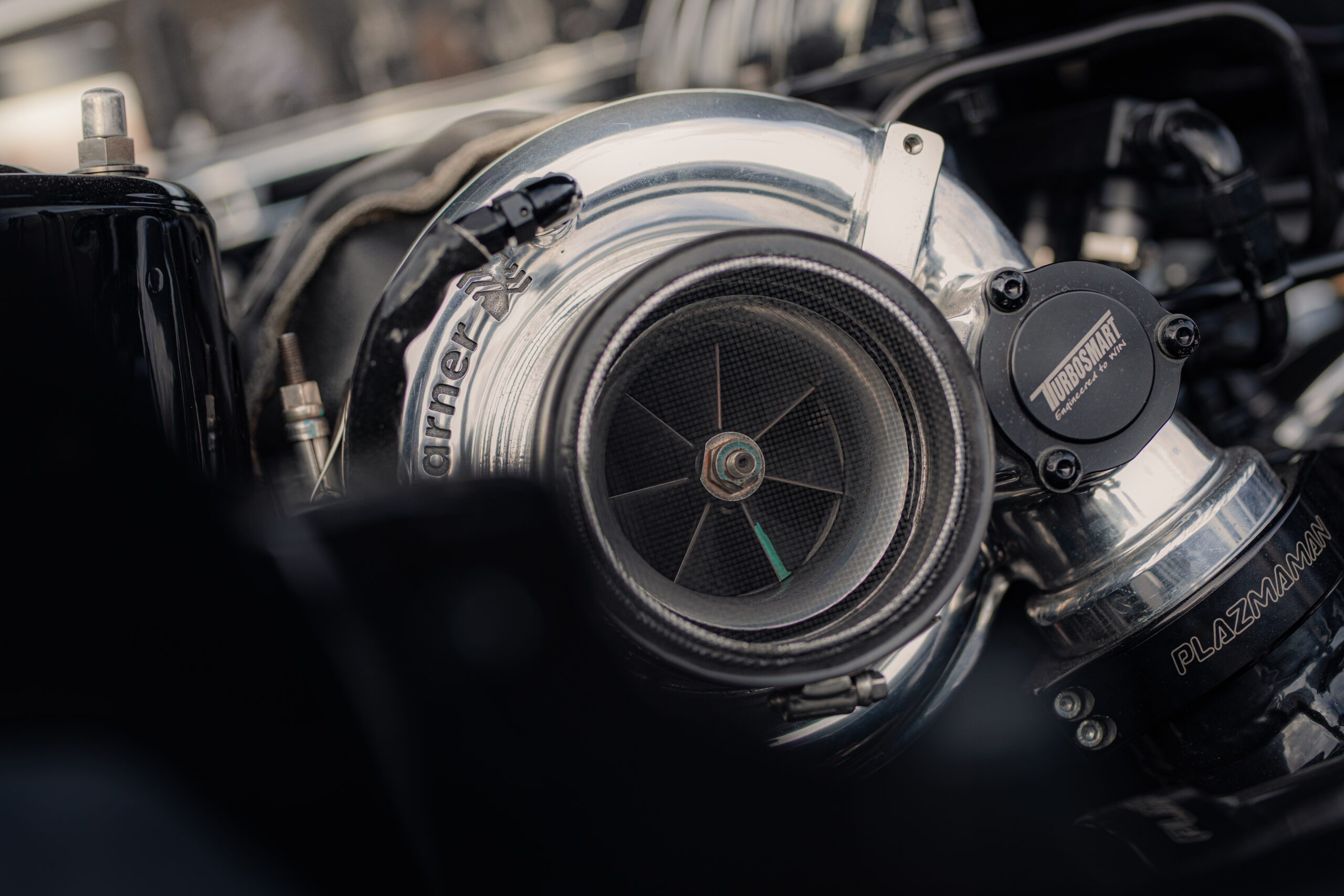 Like the engine itself, Luke’s also been through a couple of turbo and intake manifold iterations, landing on a Borg Warner EFR8474, pumping 18psi of boost into an Elite semi-PP upper and lower manifold, via a Bosch drive by wire throttle.