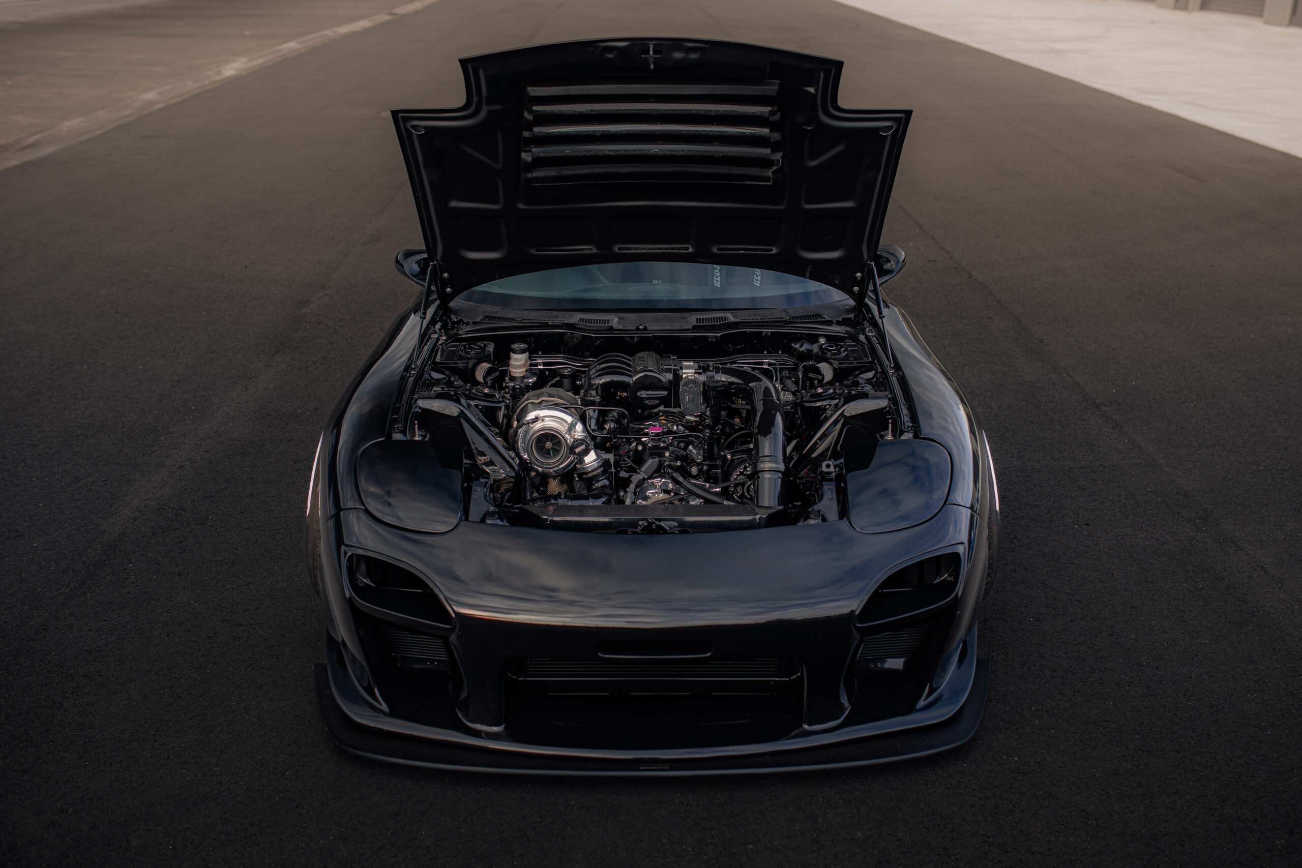 ENHANCEMENTS: Mazdaspeed GTC front bumper, D-MAX front guards, D-MAX D1 hood, Sexy Style side skirts, Origin rear over-fenders, Ganador Super Mirrors, RE Amemiya carbon door handles, RE Amemiya rear carbon diffuser, RE Amemiya carbon tail light cover, D-MAX carbon roof wing, custom carbon side splitters, Racebred Components front splitter and mount kit