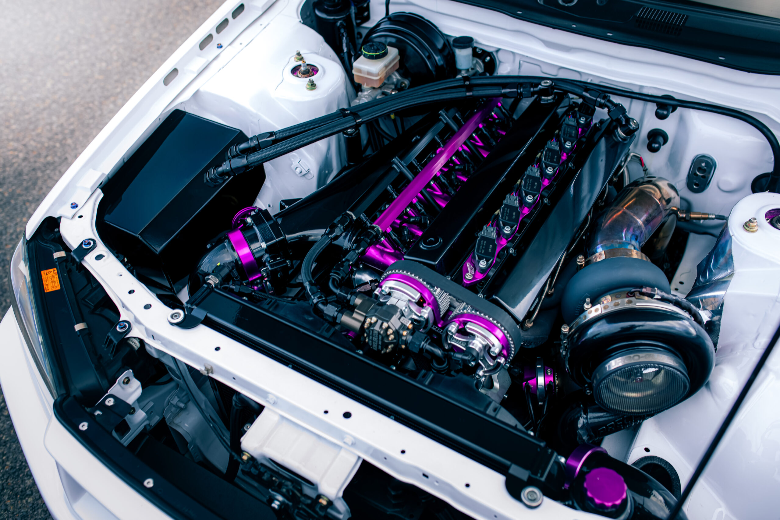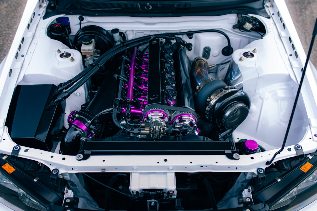 Doing it properly meant starting from the bottom up. Jayden flicked Tom at Hughes Race Built a call, and soon enough they had a plan locked in for a serious 2.8L wide-journal billet build. Having already tried an RB32 in his S15, Jayden was chasing something with a different feel. “It’s the sound,” he explains. “The 2.8 revs to 10,200 rpm and has a crisper tone than a 3.2; it’s not as deep, but it absolutely screams, plus, it’s a bit different. Everyone and their dog goes for the 3.2.”