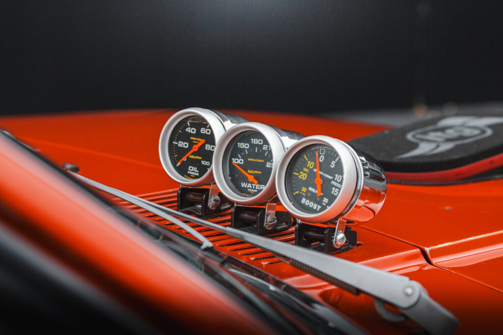 INSTRUMENTATION: External AutoMeter Pro-Comp oil pressure, water and oil temp gauges, Autometer AutoGauge Monster Memory Tacho, Rev-Rite rev limiter