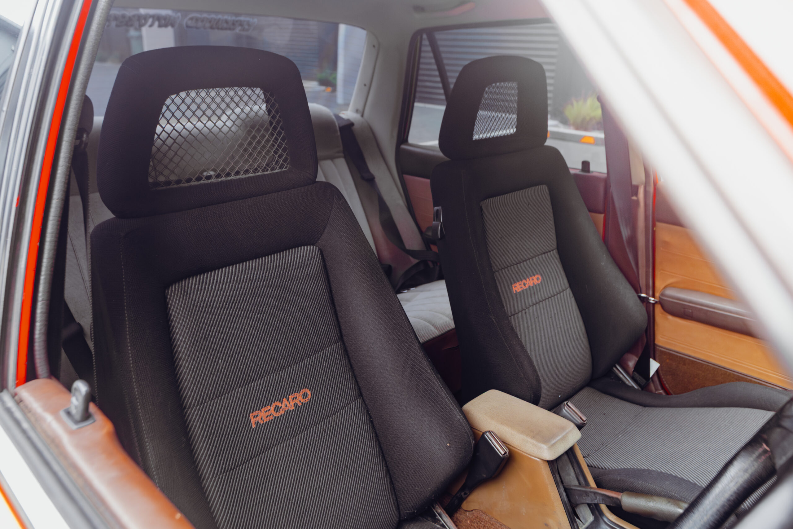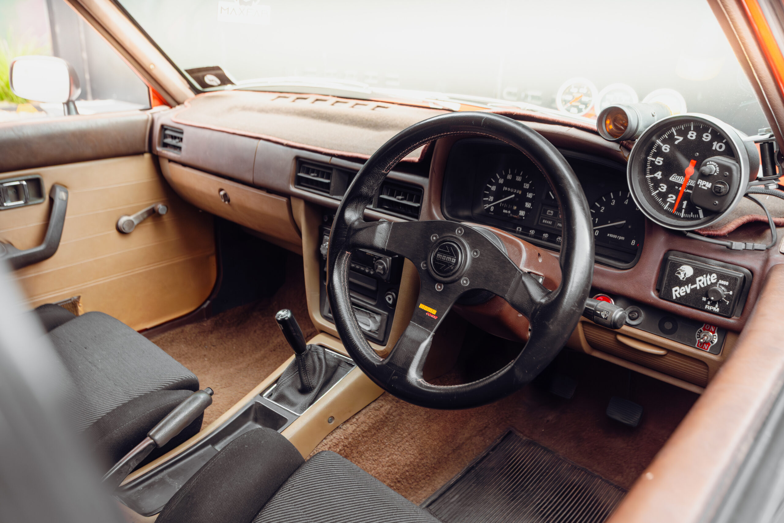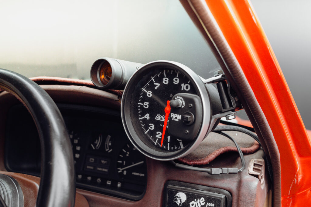Sadly, those tints hide the period-perfect interior — one fitted with Recaro Fishnet seats and a Momo Corse steering wheel. Of course, there are also the obligatory gauges to monitor oil pressure, water, and oil temp, and a big ol’ Monster Tacho for good measure.