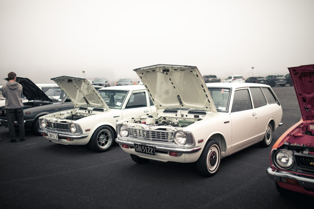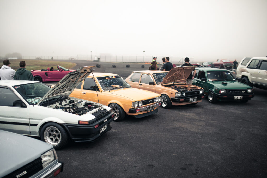 Despite the day kicking off with a trademark thick North Waikato fog, a steady stream of Toyota’s finest trickled through the tunnel and up the hill, lights ablaze. It made for a moody start — not really what you want to kick off a festival — but cresting that hill into the grounds and being directed to the applicable Show and Shine parking (allocated by decade, of course) cranked a bit of fizz into the action.