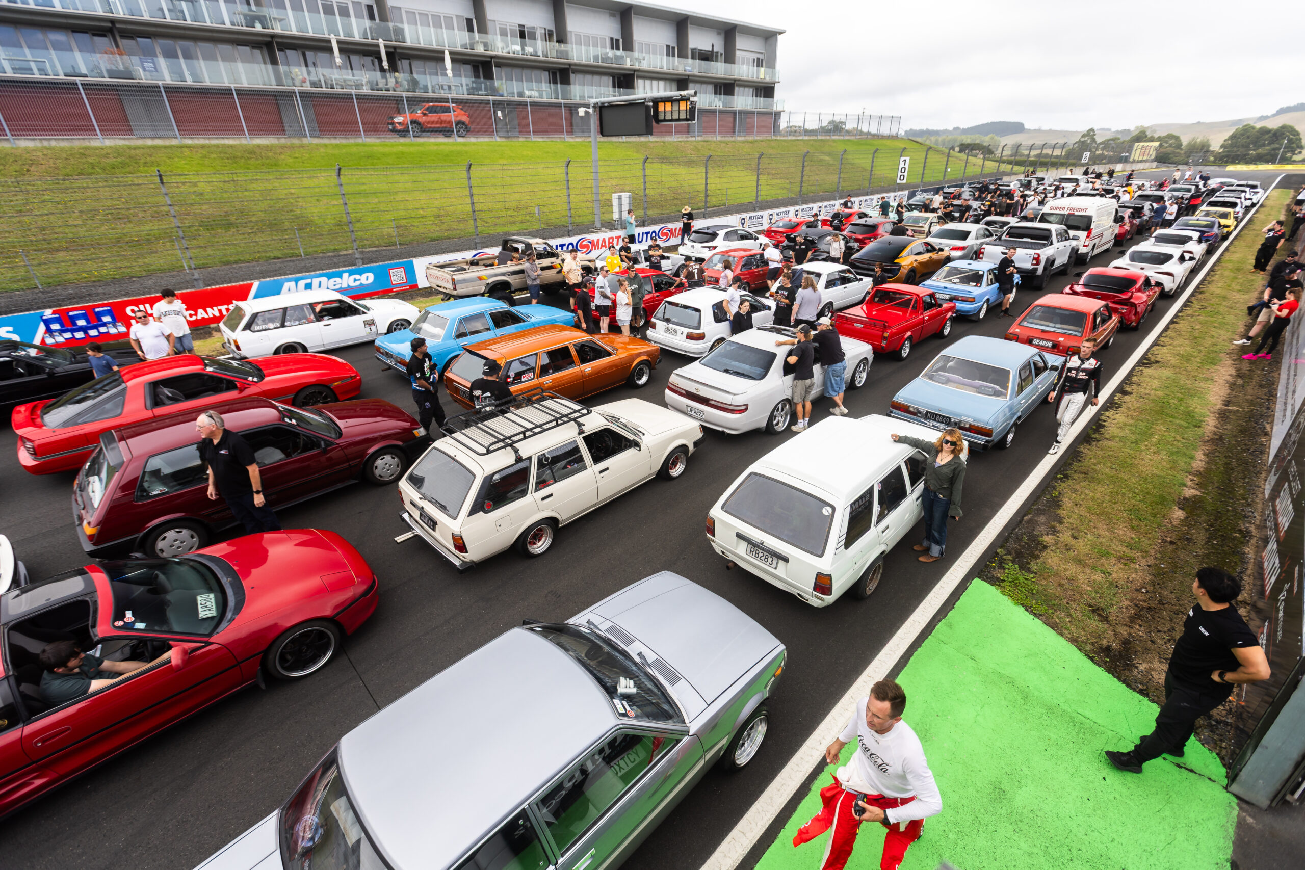 To prove the point, TNZ debuted their fully kitted GR Yaris, bristling with the full complement of GR Aero components — something of a local debut and something for the Yaris enthusiasts to have a good look at. The customary group shot on the front straight falls somewhere near lunchtime. Sent out in their respective age groups, the sight of a few hundred Toyotas all lined up as far as the eye can see would be enough to bring a tear to Barry Crump’s eye if he were still about. Hiace courier vans brush shoulders with immaculate Lexus F-Sport variants, with the odd rough-and-ready 4×4 Hilux contrasting with the gleaming chrome of a classic Celica or Crown. And we haven’t even begun to talk about the absolute horde of SW20 MR2s that made the showing — surely a record for the most mid-engined Toyotas in one place on Kiwi shores, ever.