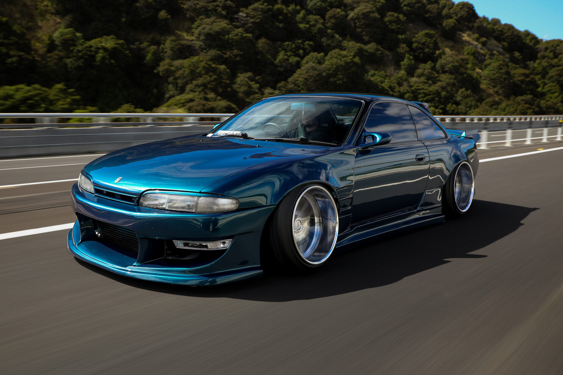 Laying frame on Weds Kranze LXZs with a Works9 and Origin Labo wide-body mashup, Josh Moffat’s S14 proves you don’t need an air tank to tuck rim